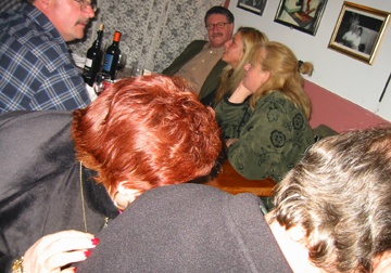 The owner of the restaurant hiding to not get her picture taken.