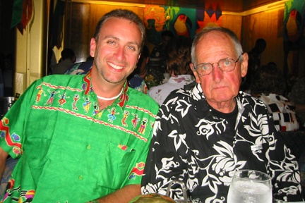 7-11-02 - Caribbean Night at dinner, a happy friend at dinner