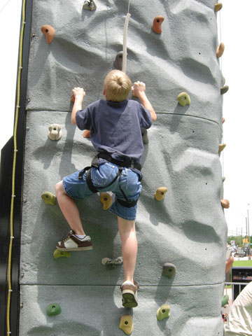 Josh rock climbing at Main St. Arts Festival
